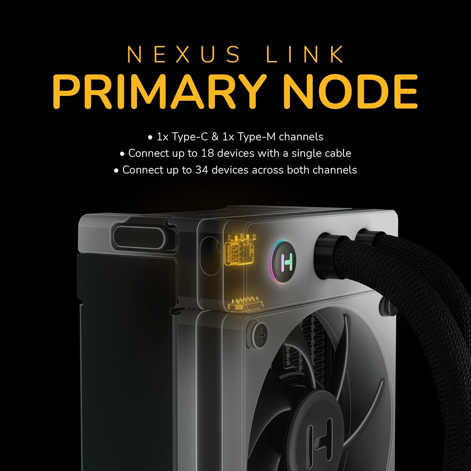 Combines fan, pump, RGB, and data into a single streamlined cable.